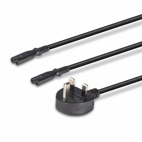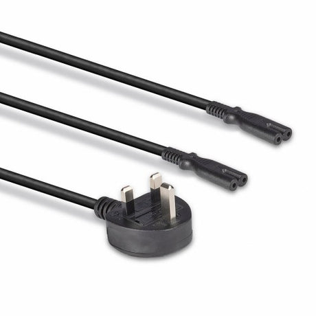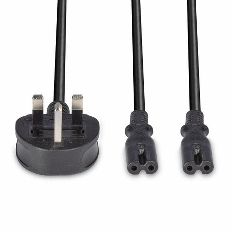 Lindy 2.5m UK 3 Pin Plug to 2 x IEC C7 Splitter Extension Cable, Black