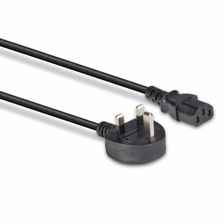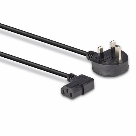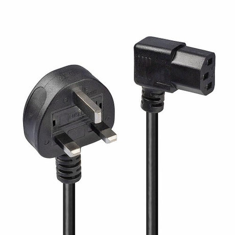 Lindy 1m UK 3 Pin Plug to Right Angled IEC C13 Mains Power Cable, Black