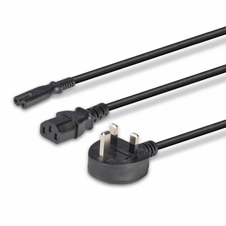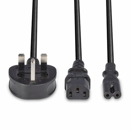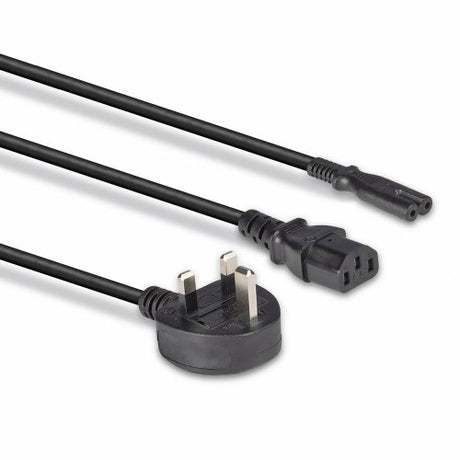Lindy 2.5m UK 3 Pin Plug to IEC C13 and IEC C7 Splitter Extension Cable, Black