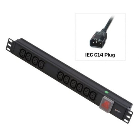 Lindy 1U 10 Way IEC Sockets, Horizontal PDU with IEC Mains Cable