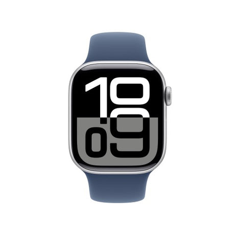 Apple Watch Series 10 GPS + Cellular 42mm Silver Aluminium Case with Denim Sport Band - M/L