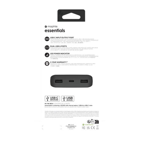 mophie essentials 20W USB-C PD wall adapter Universal White AC Fast charging Indoor