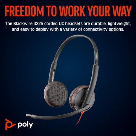 HP Poly Blackwire 3225 Stereo USB-C Headset +3.5mm Plug +USB-C/A Adapter (Bulk)
