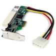 A versatile solution, the adapter card converts PCIe to PCI or PCI-X; a built-on LP4 power connector links the card to the computer power supply, allowing you to install universal voltage PCI cards (3.3V/5V).