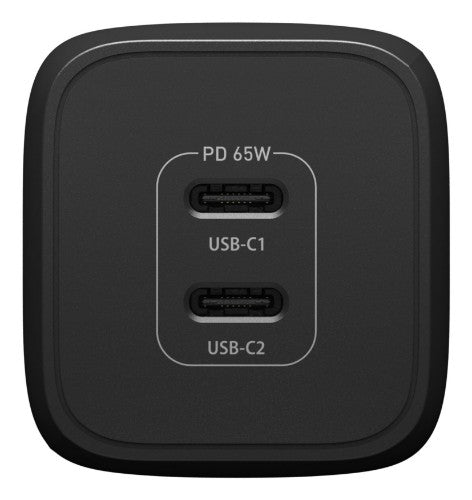 The 65W OtterBox Dual Port Wall Charger is the easy choice to quickly charge two devices at once. The compact design of this USB-C GaN wall charger works seamlessly to charge multiple devices from Apple, Samsung, Google and other smartphone and tablet brands, while the adaptable power profile charges laptops with a 20V, 3A input. Enjoy safe charging with USB-Power Delivery (PD) and Programmable Power Supply (PPS). Rigorously tested for durability and designed to work with your favourite OtterBox cable, this fast-charging GaN wall charger keeps your devices powered up and ready for anything.Specifications