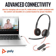 Experience the high-quality audio you expect from Poly with a headset that offers PC wideband, a noise-canceling mic, and hi-fi stereo sound options. Dynamic EQ optimizes call quality and automatically adjusts the settings for listening to multimedia.Advanced connectivity