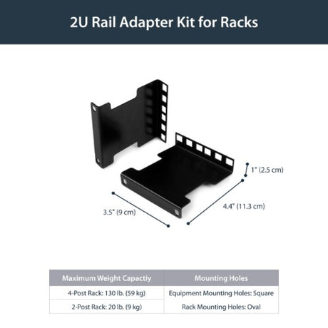 StarTech.com 2U Server Rack Depth Extender Adapter Kit with 4” Adjustment