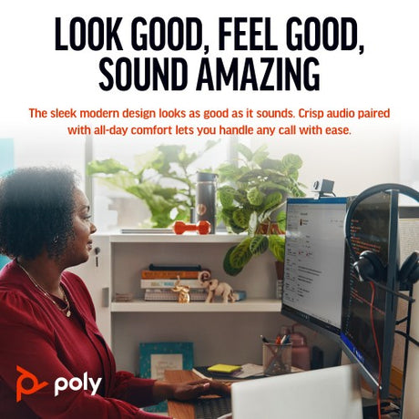 HP Poly Voyager Focus 2 Microsoft Teams Certified USB-C-C Headset +USB-C/A Adapter +Charging Stand