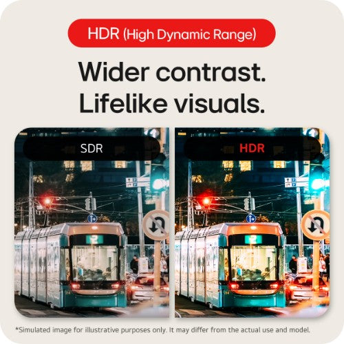 - HDR10 with DCI-P3 90% (Typ.) provides a more life-like picture