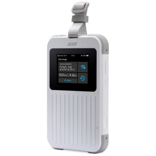 Acer Connect M6E with 1GB. Wi-Fi band: Dual-band (2.4GHz + 5GHz or 2.4GHz + 6GHz), Top Wi-Fi standard: Wi-Fi 6E (802.11ax), Wi-Fi standards: 802.11a, 802.11b, 802.11g, Wi-Fi 4 (802.11n), Wi-Fi 5 (802.11ac), Wi-Fi 6E (802.11ax). Mobile network generation: 5G, 4G standard: LTE, 5G standard: NR. Product type: Portable router, International Protection (IP) code: IP68. Antenna design: Internal, Antenna type: 2x2. Processor frequency: 2500 MHz, Internal memory: 4096 MBSpecifications