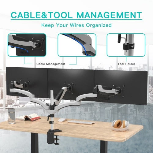 - Mount Three 15-28″ Flat or Curved Screen Monitors to a Desktop