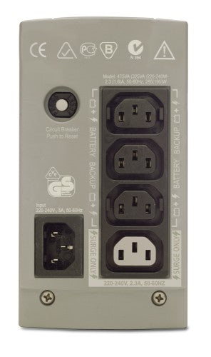 APC Back-UPS CS, 210 Watts / 350 VA,Input 230V / Output 230VSpecifications